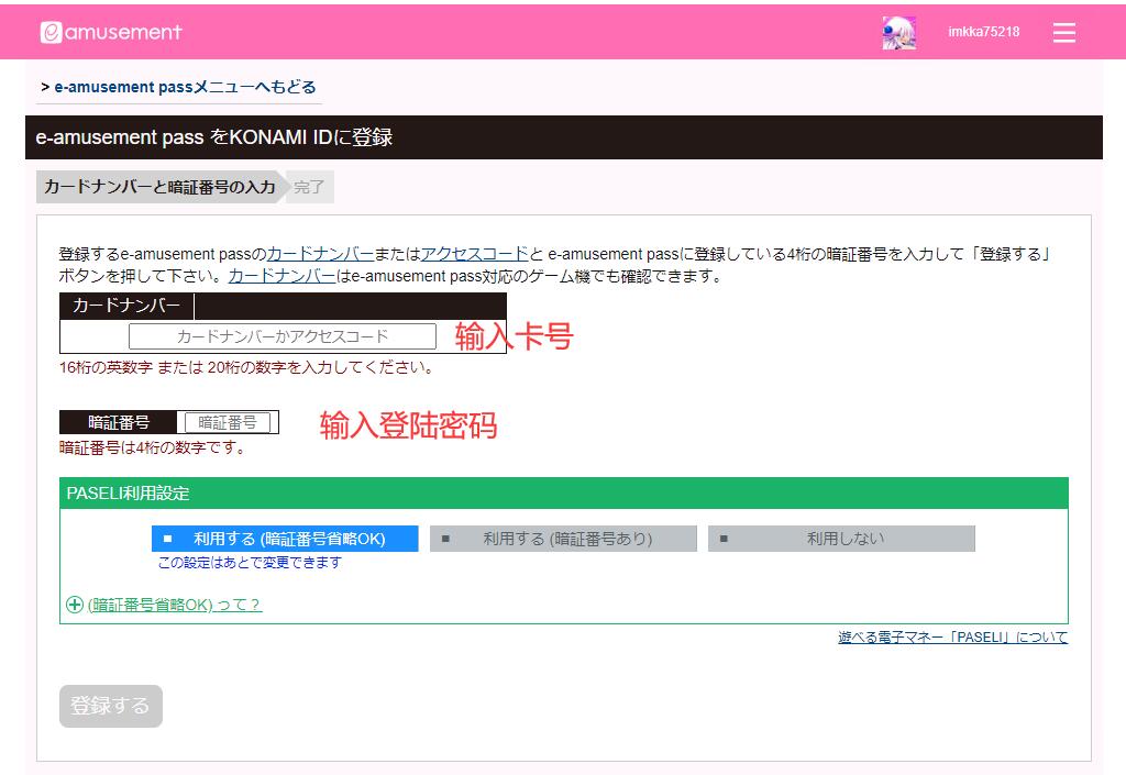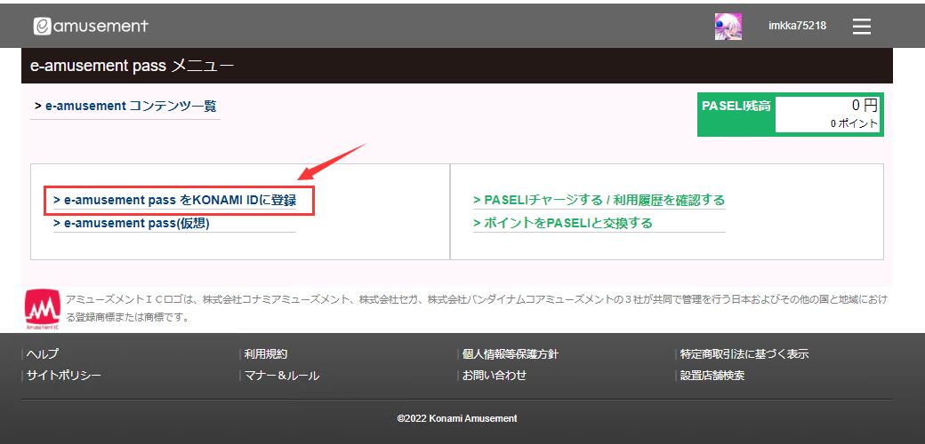 - 点击「e-amusement pass をKONAMI IDに登録」