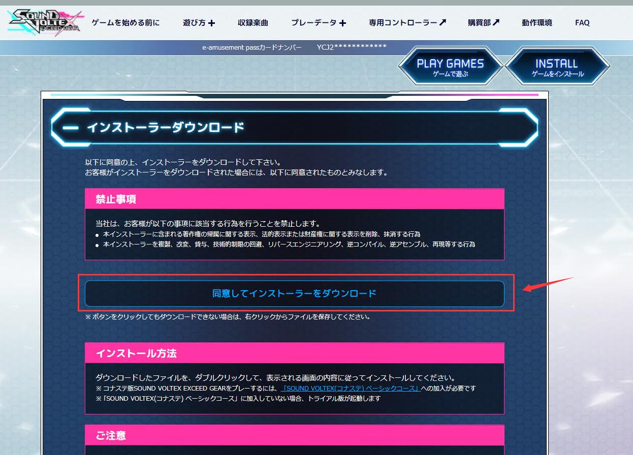 - 打开下载页(https://p.eagate.573.jp/game/eacsdvx/vi/download/index.html),点击「同意してインストーラーをダウンロード」。